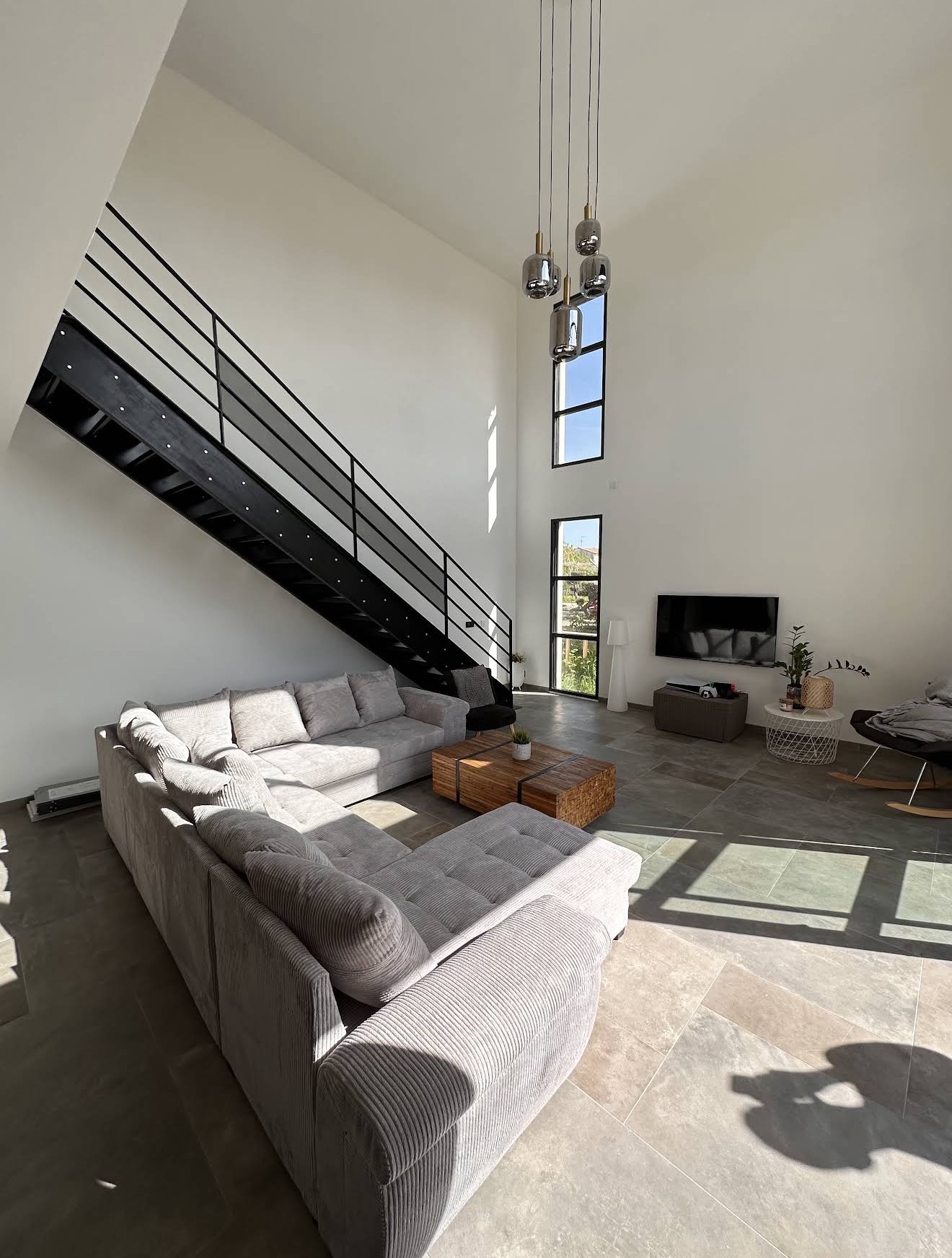 Esprit industriel se marie idéalement au modernisme de la maison situé sur Valergues dans l’herault.